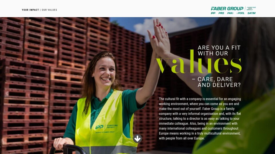 At Faber Group we share three values, across all entities and countries: Care, Dare and Deliver. These values reflect the culture of our company, the way we work together and how we operate our business.