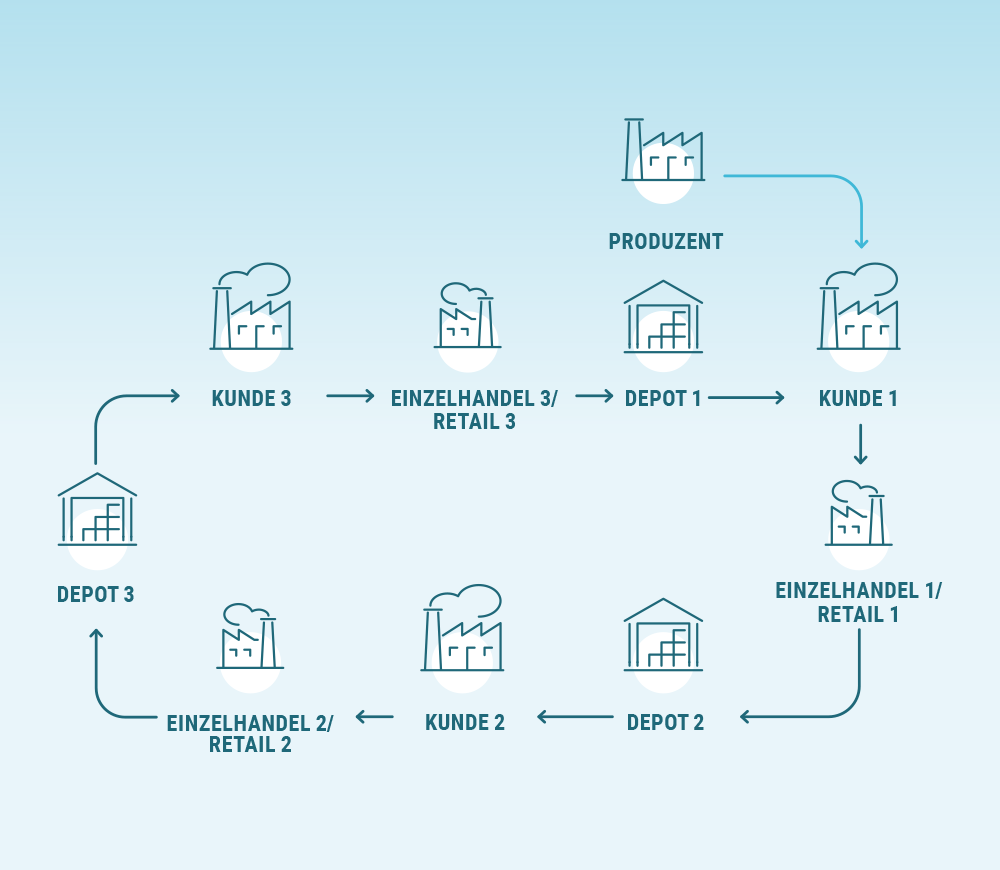 Closed Pooling ist ein System zur Wiederverwendung, bei dem wiederverwendbare Ladungsträger von IPP & PRS ohne Eigentümerwechsel in Umlauf gebracht werden, d. h. IPP & PRS bleiben Eigentümer der Ladungsträger.