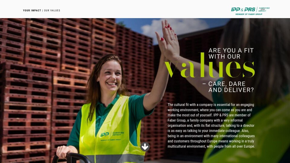The cultural fit with a company is essential for an engaging working environment, where you can come as you are and make the most out of yourself. IPP & PRS are member of Faber Group, a family company with a very informal organisation and, with its flat structure, talking to a director is as easy as talking to your immediate colleague. Also, being in an environment with many international colleagues and customers throughout Europe means working in a truly multicultural environment, with people from all over Europe.