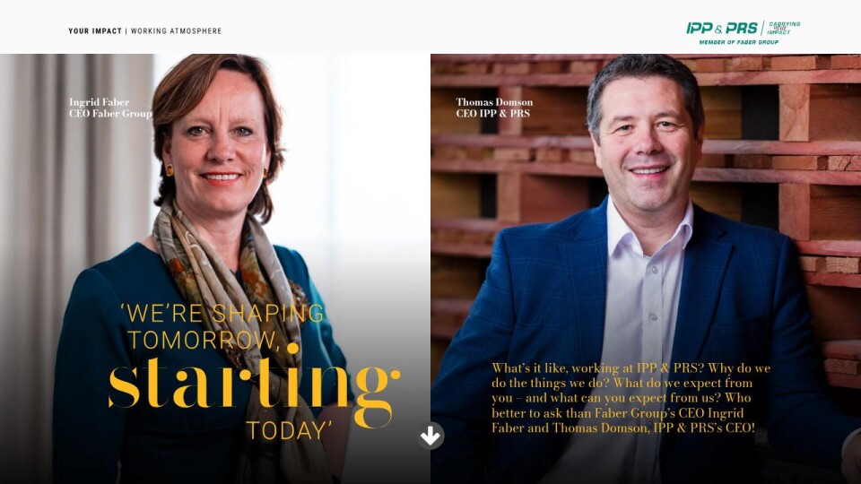 What’s it like, working at IPP & PRS? Why do we do the things we do? What do we expect from you – and what can you expect from us? Who better to ask than Faber Group’s CEO Ingrid Faber and Thomas Domson, IPP & PRS’s CEO!