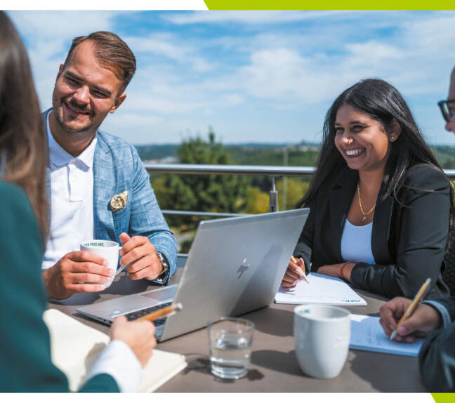 Den Tag mit einer Teambesprechung auf der Dachterrasse beginnen? Warum nicht Geschäftliches mit Vergnügen verbinden, oder?!