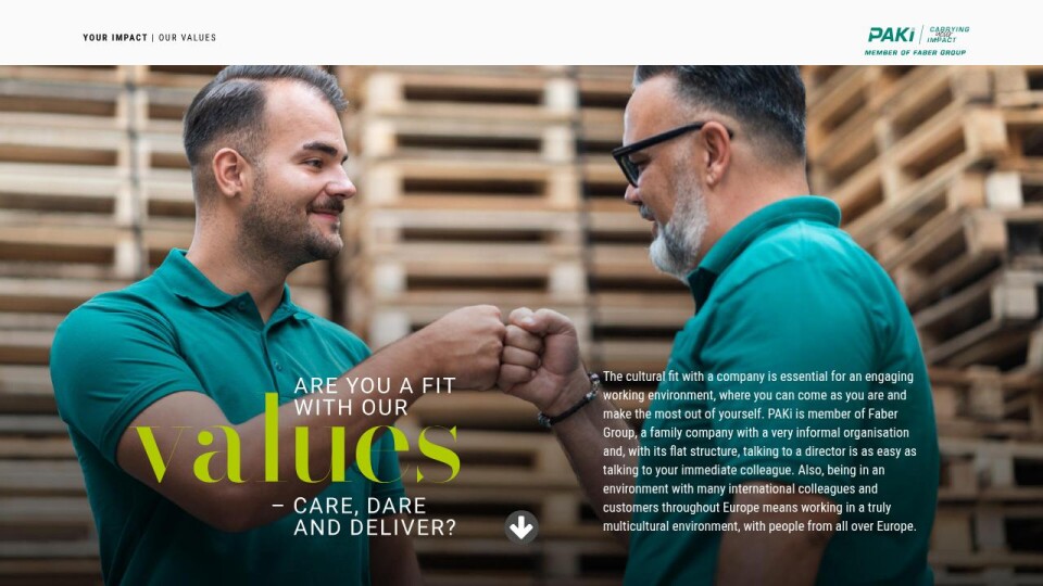 The cultural fit with a company is essential for an engaging working environment, where you can come as you are and make the most out of yourself. PAKi is member of Faber Group, a family company with a very informal organisation and, with its flat structure, talking to a director is as easy as talking to your immediate colleague. Also, being in an environment with many international colleagues and customers throughout Europe means working in a truly multicultural environment, with people from all over Europe.