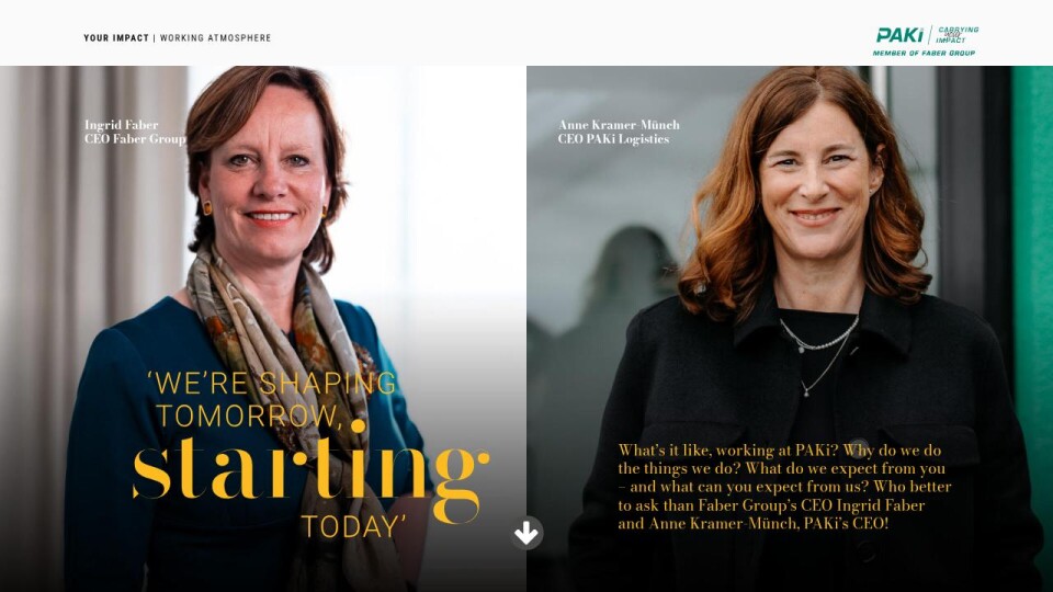 What’s it like, working at PAKi? Why do we do the things we do? What do we expect from you – and what can you expect from us? Who better to ask than Faber Group’s CEO Ingrid Faber and Anne Kramer-Münch, PAKi’s CEO!