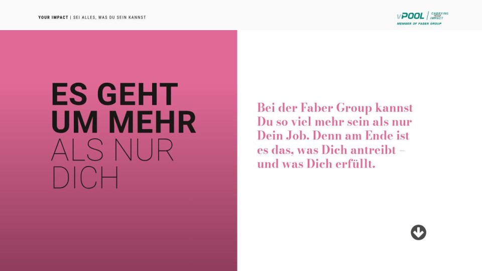 Bei der Faber Group kannst Du so viel mehr sein als nur Dein Job. Denn am Ende ist es das, was Dich antreibt – und was Dich erfüllt.